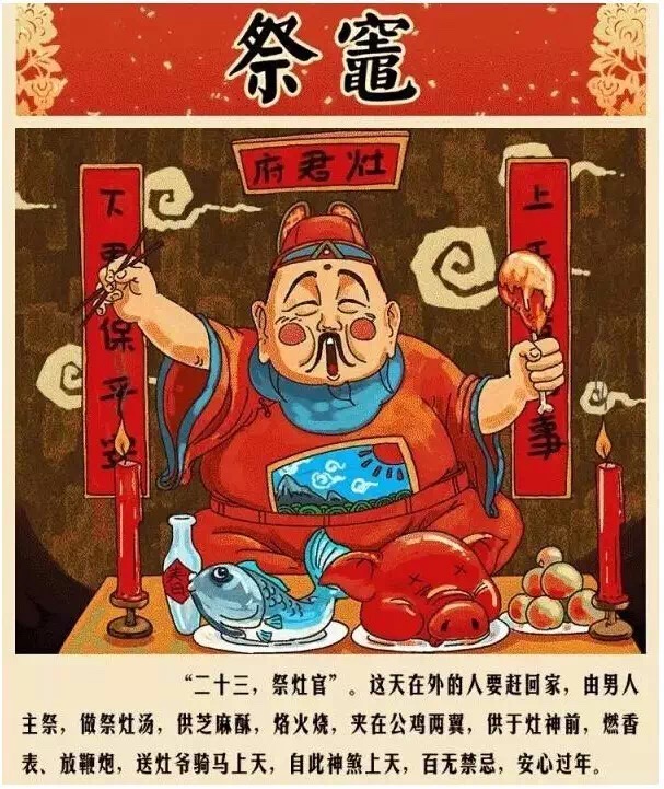 小年這天,也是民間祭灶的日子。民間傳說(shuō),每年臘月二十三,灶王爺都要上天向玉皇大帝稟報(bào)這家人的善惡,讓玉皇大帝賞罰。
