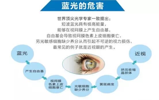 專家分析指出,導致視力模糊的“元兇”其實是各種電子產(chǎn)品的屏幕藍光。經(jīng)試驗發(fā)現(xiàn),連續(xù)玩20分鐘智能手機,眼睛視力平均下降到43.8度近視狀態(tài),淚膜破裂時間平均為5.3秒,平均每分鐘眨眼7.67次。當然造成視力下降的電子產(chǎn)品不僅僅只是手機,但是手機卻是最傷眼的,約是電視6倍的傷害,約是電腦3倍的傷害!
