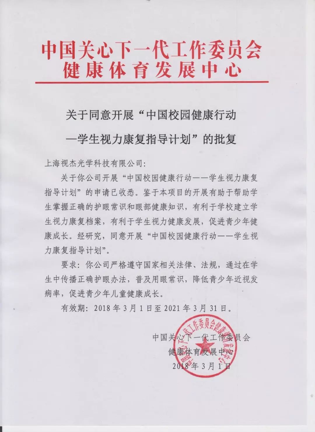 中國校園健康行動學生視力康復指導計劃辦公室