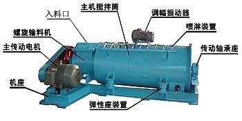 粉塵加濕機由主體,電控柜,主傳動,螺旋輸料機,多柱線性攪拌器,調(diào)幅振動器及多管噴淋裝置等八部分系統(tǒng)所組成。(上卸料機屬于單機設(shè)備,訂購時單獨提出)整機體固定在由槽鋼焊接制作的機座上,輸送拌料主簡體由四組彈性元件支撐,與機座傳動裝置軟性密封連接,主筒體頂部固定座上安裝調(diào)幅振動馬達,通過調(diào)幅振動裝置,使主筒體產(chǎn)生同步幅度振蕩。主機減速裝置采用皮帶緩沖減速傳動機構(gòu),徹底杜絕悶機,堵轉(zhuǎn)現(xiàn)象,減少停機清理時間,提高工作效率,該機配有PLC電器自動控制系統(tǒng),使整機具有自動保護性能完善,運行穩(wěn)定,維修方便,使用壽命長等眾多優(yōu)點。